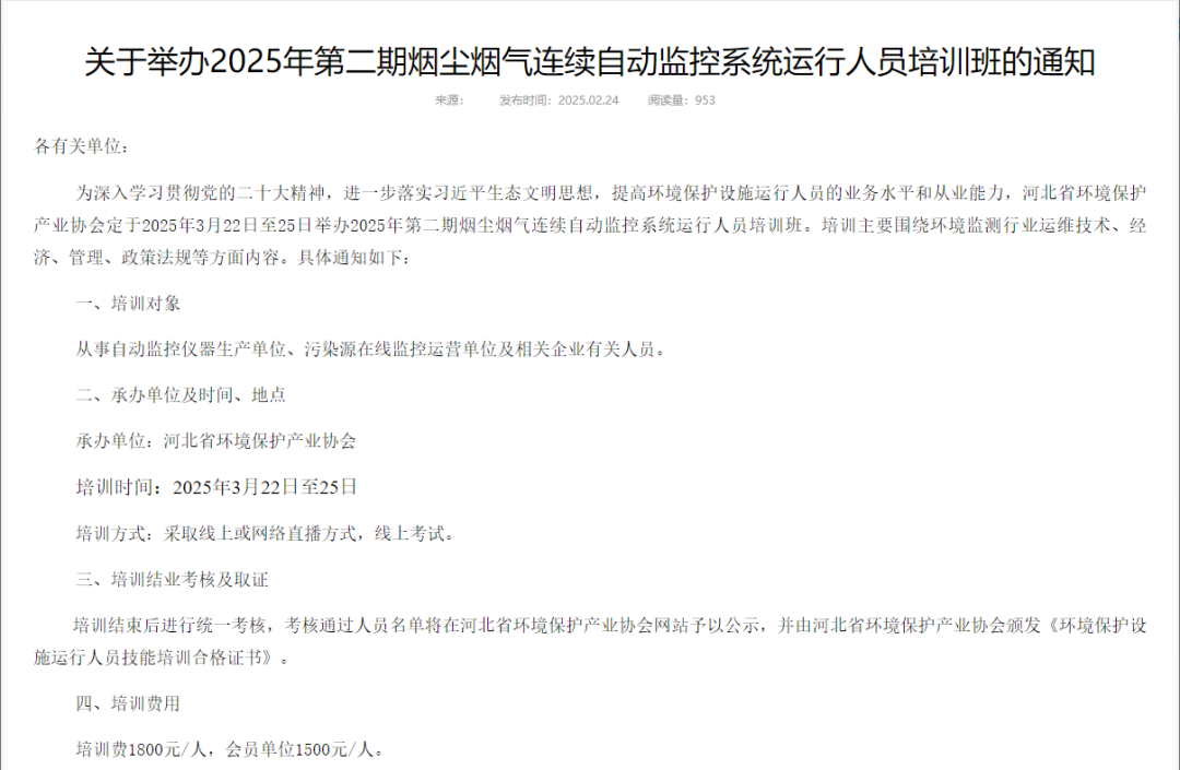 附:《關于舉辦2025年第二期煙塵煙氣連續自動監控系統運行人員培訓班的通知》