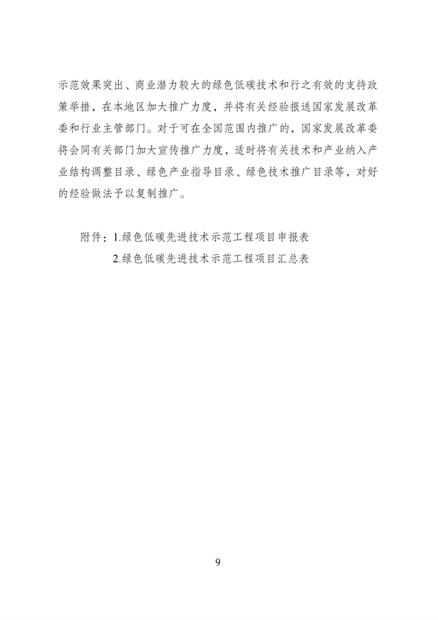 《綠色低碳先進技術示范工程實施方案》的通知